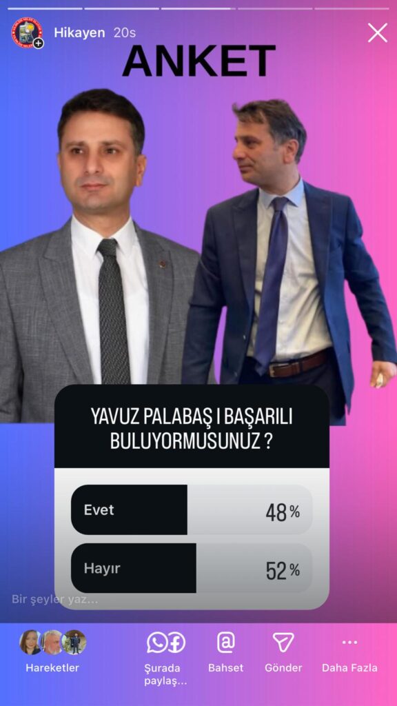 Çatalağzı Belediye Başkanı Yavuz Palabaş hakkında sosyal medyada yapılan ankette ortaya çıkan sonuçlar, ilçede büyüyen memnuniyetsizliği bir kez daha gözler önüne serdi. Katılımcıların çoğunluğu, belediye başkanlığının başarılı bulunmadığını açıkça ortaya koydu.