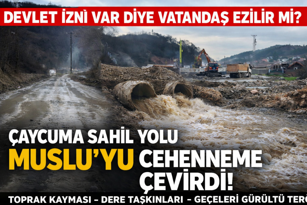 Zonguldak Çaycuma Sahil Yolu projesinde çalışma yürüten şirketlerin, Kilimli ilçesine bağlı Muslu Beldesi ve Emirler Mahallesi’nde neden olduğu çevre kirliliği, ses kirliliği ve maddi-manevi zararlar artık tahammül sınırlarını aşmış durumda.