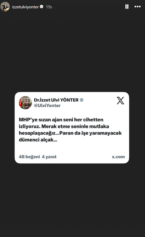 MHP Genel Başkan Yardımcısı İzzet Ulvi Yönter, sosyal medyada kontrolünü kaybetti, partinin en kritik isimlerinden birini hedef aldı, ardından apar topar istifa etti.