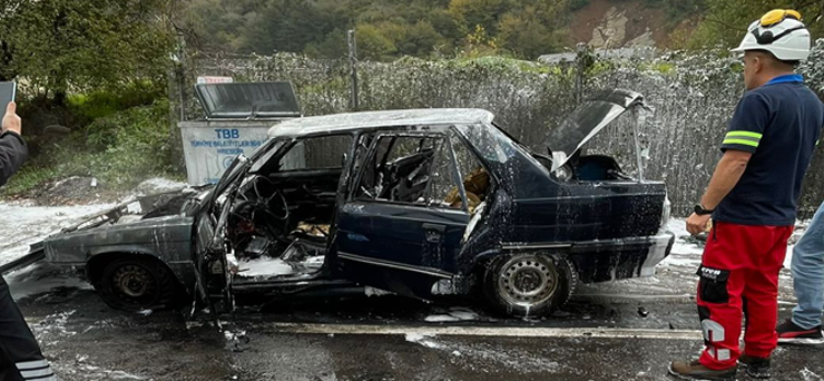 Zonguldak Muslu – Kazköy Cumhuriyet Mahallesi ana yolunda sabah saat 09.30’da seyir halindeki bir otomobil adeta ölümle burun buruna geldi. Muslu istikametine doğru ilerleyen karı-koca sürücüler, araçlarından yükselen alevleri fark eder etmez otomobili yol kenarına çekerek canlarını zor kurtardı.
